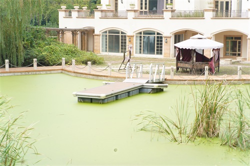 长满绿色苔藓的泳池