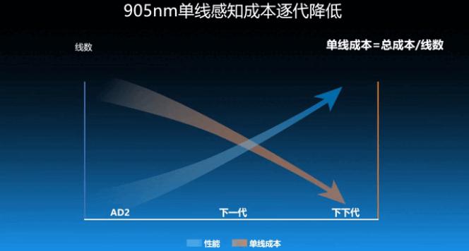 车展上,北醒提出了 " 单线成本 " 指标,即总成本除以线数。基于 " 北醒应龙 " 激光雷达平台,性能会持续提升,而单线成本会逐代下降。