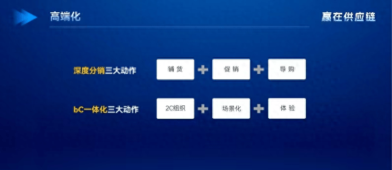 随着行业高端化,仅仅靠分销模式已经无法解决问题,必须转向以C端推广为导向的bC一体化渠道模式。