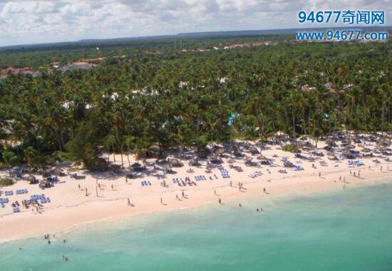 多米尼加位于加勒比海伊斯帕尼奥拉岛东部。西接海地,南临加勒比海,北濒大西洋,东隔莫纳海峡同波多黎各相望。境内地势较高,多山,科迪勒拉山脉分中央、北部和东部三条横贯全国。