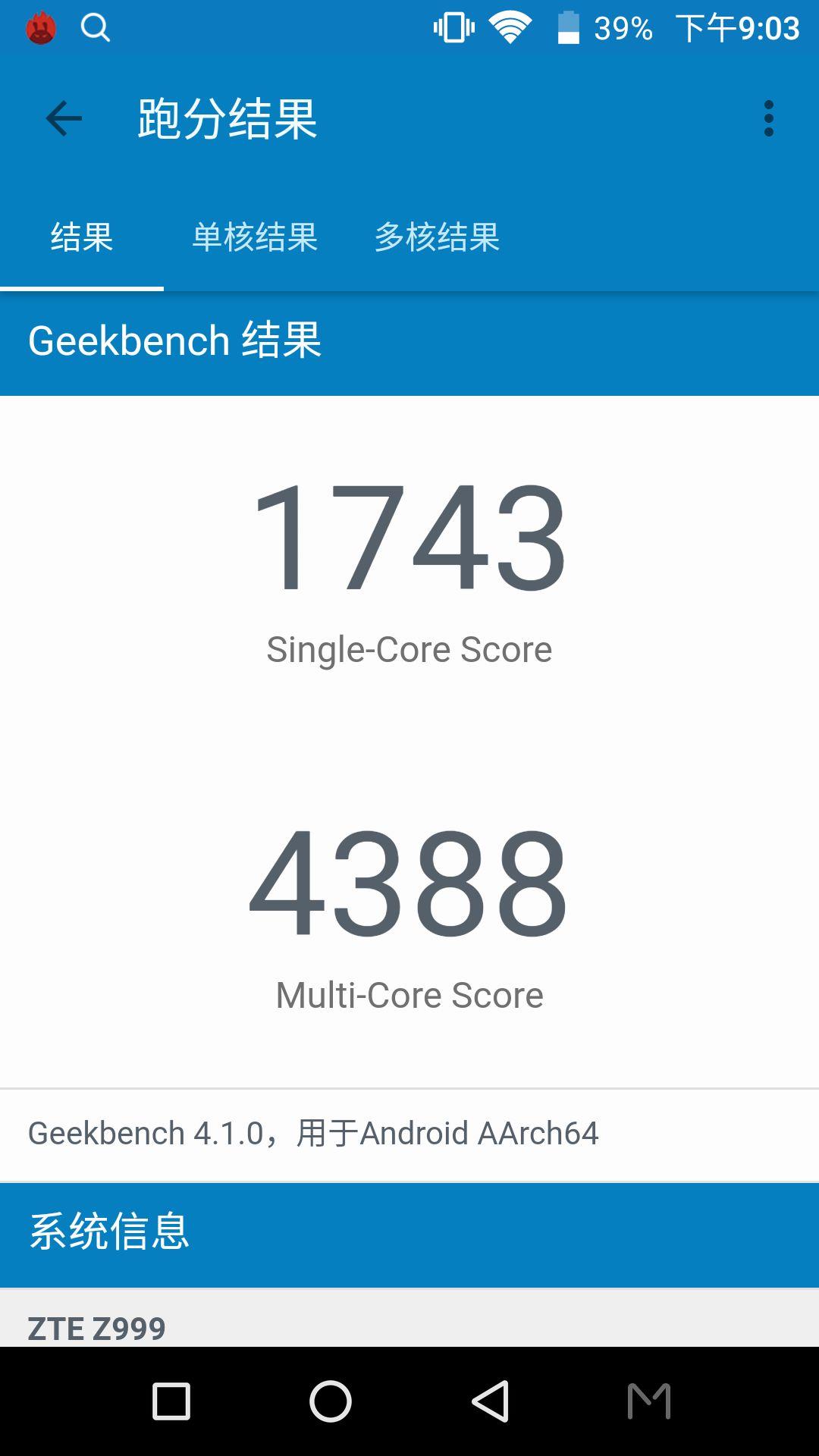 我们使用Geekbench进行CPU的核心跑分和运算跑分测试,得到了单核1743分,多核4388分和运算得分7204分的成绩,这也印证了上文笔者的说法。