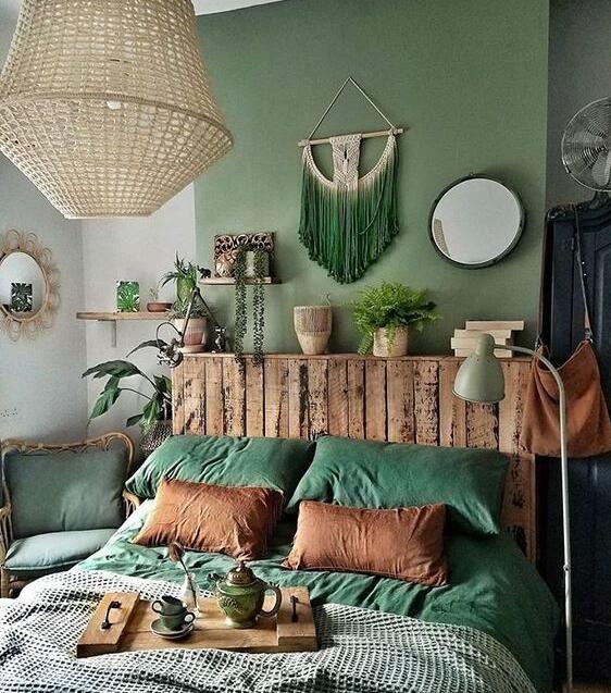 波希米亚风格的苍白卧室墙壁颜色