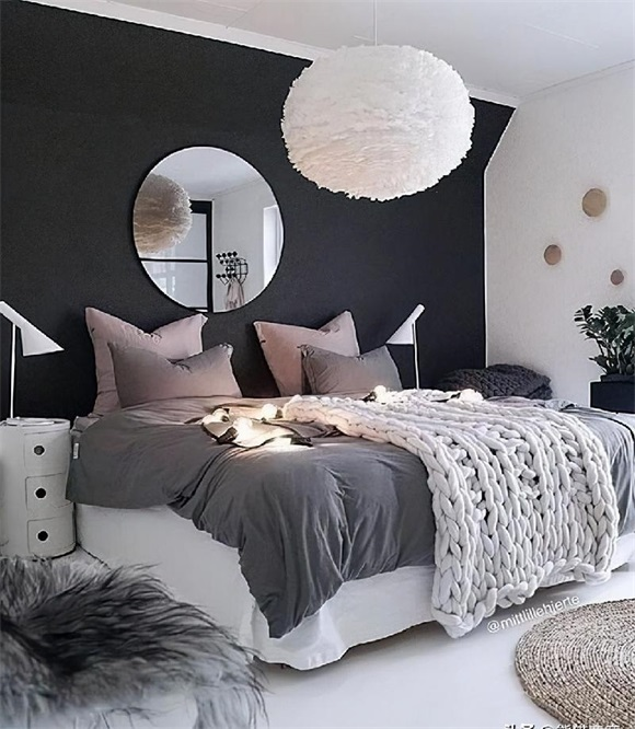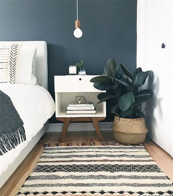 黑色地毯或带有桃红色的深色墙是一个很好的组合,在您的卧室中将真正脱颖而出 。它非常适合搭配淡蓝色或薄荷绿色的装饰墙。而且,它几乎可以与任何家具的阴影/材料配合使用。合适的地毯将真正将任何空间结合在一起。