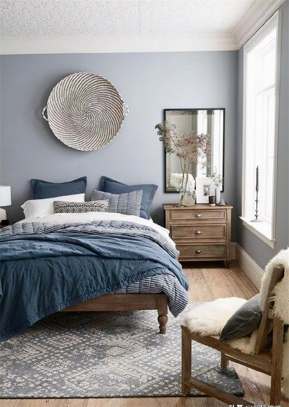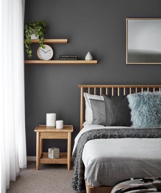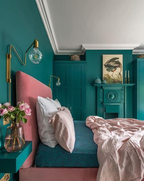 它很大胆,但很优雅。它看起来很棒,卧室里有黑色,白色,棕色,甚至中性装饰。做一个重点墙,或者做大,把整个卧室涂成这种颜色。