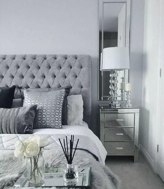 浅灰色会给你的卧室带来柔软、冰冷的边缘。您可以将其与优雅的金色触感搭配,将空间融为一体。橄榄色或翡翠色盘和强调墙,将创造奇迹,创造出具有这种色调的视觉杰作。
