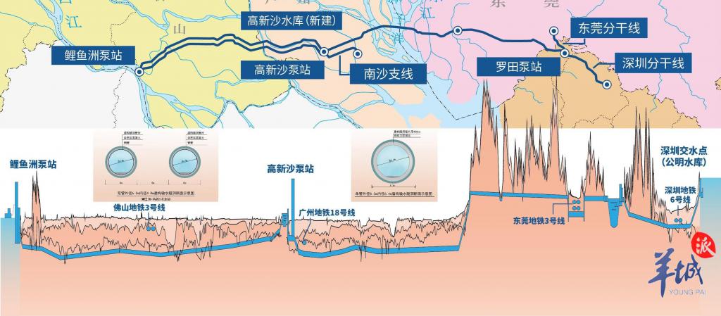 记者在广州南沙举办的珠江三角洲水资源配置工程通水活动现场获悉,该工程输水线路全长 113.2 公里,总投资约 354 亿元,年供水量 17.08 亿立方米,西起西江干流佛山顺德鲤鱼洲,东至深圳公明水库,由一条干线、两条分干线、一条支线、三座泵站和四座调蓄水库组成,以地下深层输水隧洞形式穿越粤港澳大湾区核心城市群,工程设计工期为 60 个月。