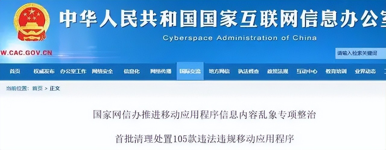对网民反映强烈的部分移动应用程序传播淫秽色情、暴恐血腥等违法违规信息,提供诈骗赌博、招嫖卖淫等违法违规服务的网络乱象,国家网信办依据《网络安全法》《网络信息内容生态治理规定》《移动互联网应用程序信息服务管理规定》等法律法规和国家有关规定,自11月5日起组织开展移动应用程序信息内容乱象专项整治。首批清理下架猫途鹰、苏格、面具公园、剧能玩、视界、tata、西蒂、瘾欢、单身交友聊吧、黑夜漂流瓶、菲姬、夜撸云、花姿直播、麻豆传媒、豆浆TV播放器、红杏视频、青青草视频、享色、含羞草、柠檬、噗噗漫画、51漫画、韩漫人、火山阅读等105款违法违规移动应用程序。