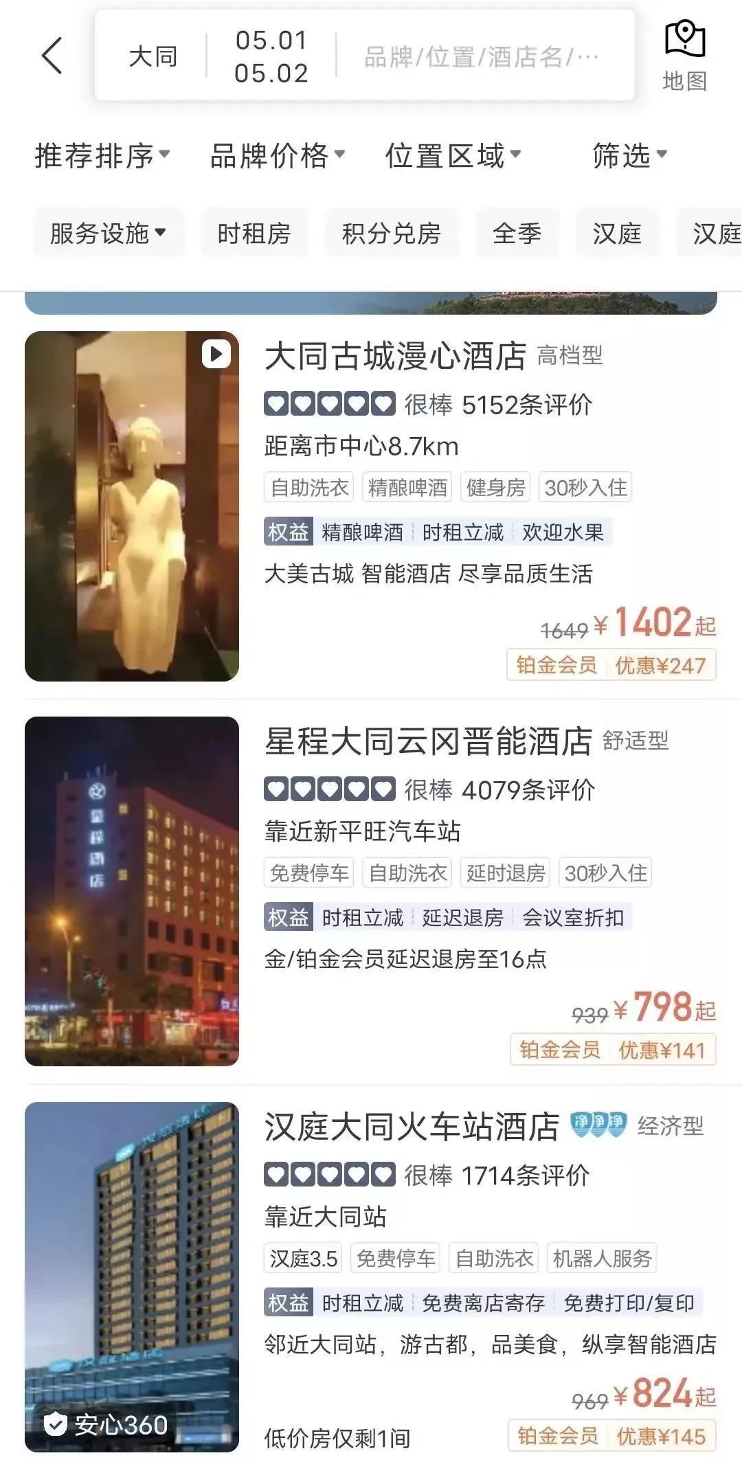 当淄博文旅局承诺五一期间烧烤平价甚至降价出售时,山西平遥古城、太原古县城、大同古城等一些景点都在忙着涨价或变相涨价,被吐槽一碗面只有碗底的几根,原本200元一晚的宾馆直接飙到1500元,上演了现实中的“狂飙”