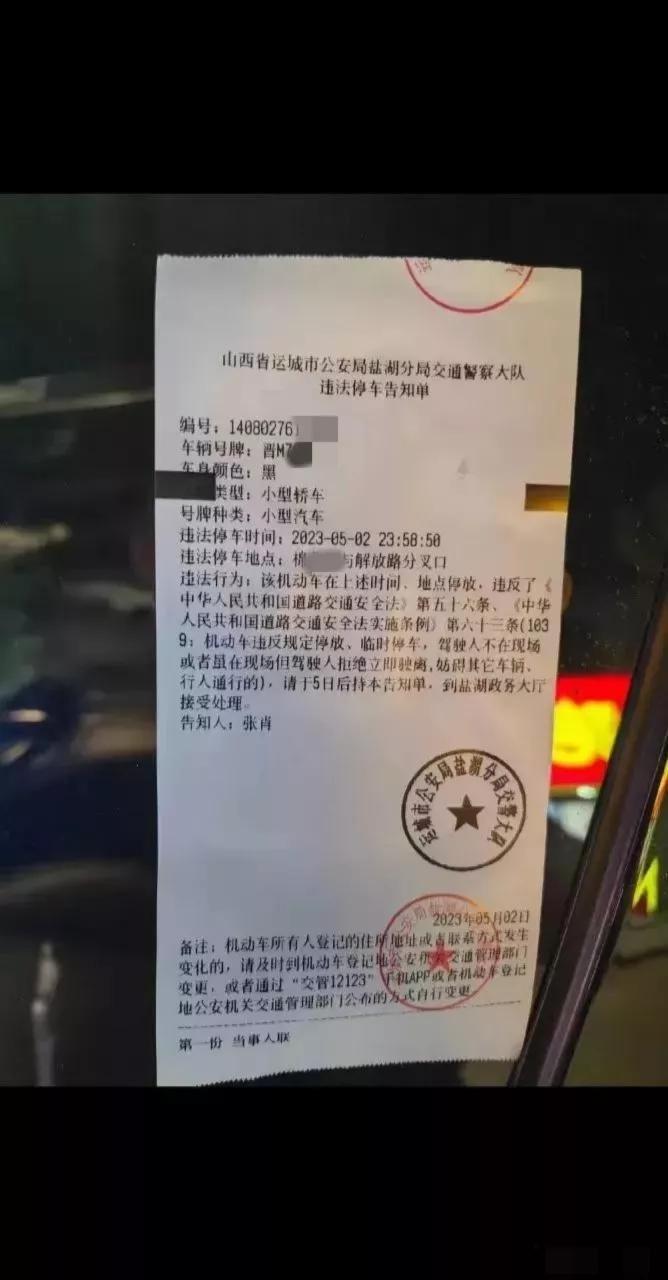 有网友发文称:当淄博为五一游客专门建设大型停车场时,山西各地交警却在加大力度处罚违规停车,省会太原有外地游客停车20分钟被贴罚单转身离开,运城甚至有午夜23点被贴罚单的。。。