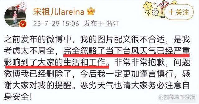 7 月 29 日,《艰难的制造》杀青,宋祖儿晒出一组杀青照,其中一张 " 杀青日台风来欢送 " 导致评论翻车,随后宋祖儿删文道歉。