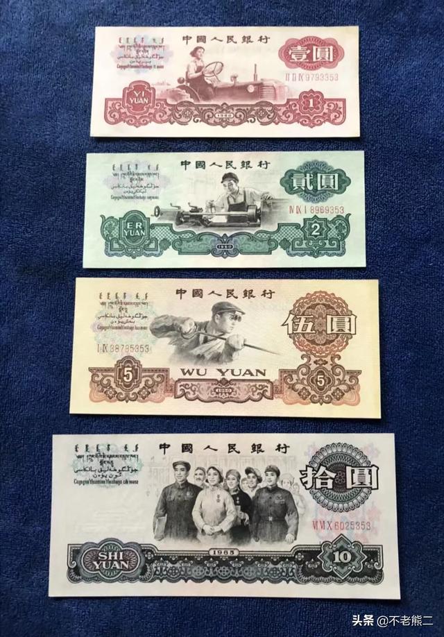 题主提供的纸币分别有“1960”的1元、2元、5元和“1965”的10元,它们都属于第三套人民币。