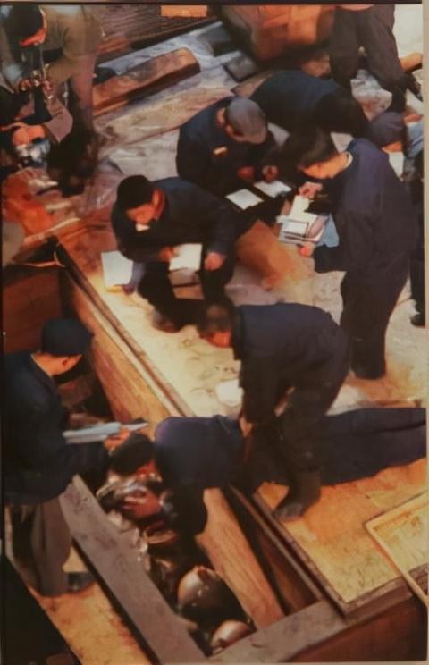 当时墓内井字形棺椁的4个边厢堆满文物,箱子太深,伸手够不到,人又不能下去,其他人经验不足,正束手无策之际,是身高臂长、不顾年迈的任全生出马,他腰系洗澡巾,让人拉着,卧在盖板上,探头伸手进去,把里面的随葬品一件一件完好地取了出来。