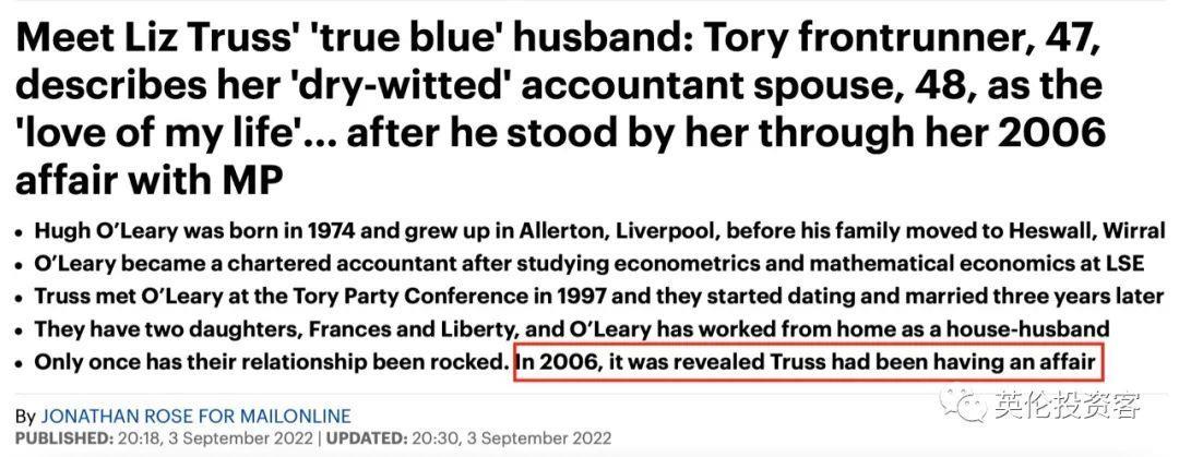 值得一提的是,一直在外打拼的特拉斯曾被曝出和已婚的保守党议员Mark Field发生婚外情。