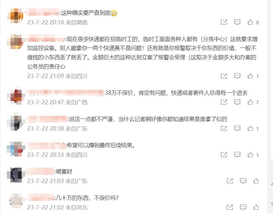 对此,网友热议:" 这种确实要严查到底 "" 几十万的东西,不保价吗?"......