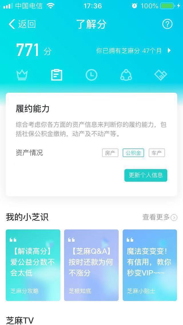 4.在支付宝中点击“我的”然后点击芝麻信用,然后点击芝麻分数,然后绑定所有你能绑定的的东西,比如你的学历,你的驾驶证,公司,公积金,房产,车产等都可以为你加分。