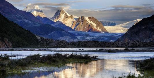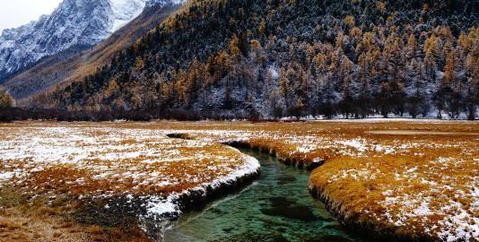 在秋天的时候这里更是漂亮,就好像芒果蛋糕一样。黄橙橙的特别“美味”,秋风吹过麦苗纷纷倒去,那种感觉真好。在巨大的雪峰之下有个冲古寺,虽然已经被破坏得很严重,但是残留的建筑依然漂亮,当地充满了信仰。