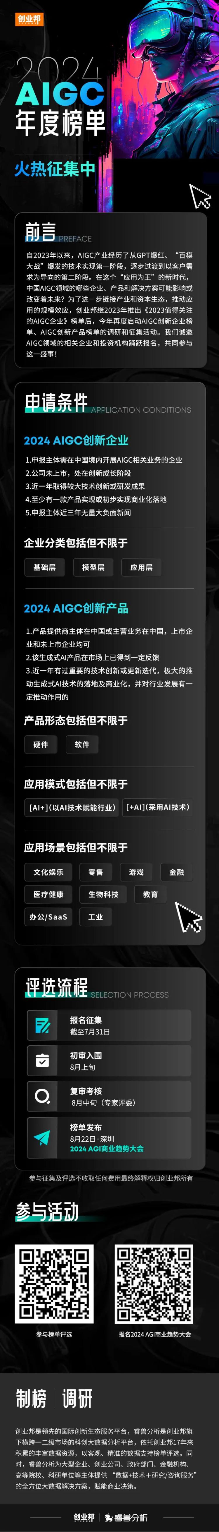 创新潮涌,谁主沉浮?创业邦2024AIGC年度榜单征集倒计时!