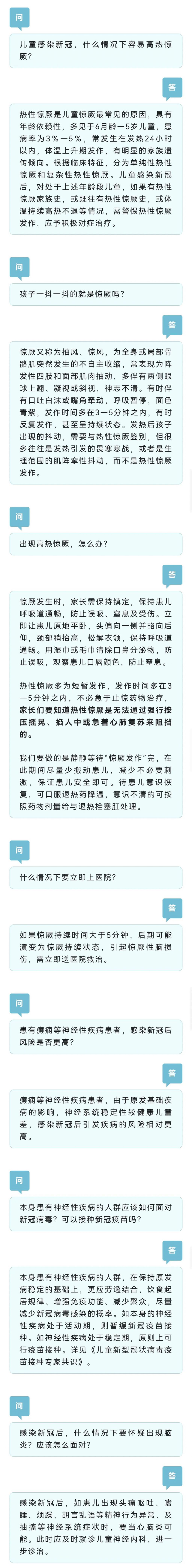 感染新冠后,孩子发热到高热惊厥怎么办?什么情况下要怀疑出现脑炎?患有神经性疾病的儿童可以接种新冠疫苗吗?
