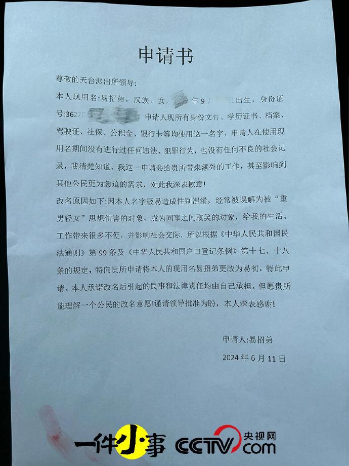 上个月,江西女孩易初终于改名成功,她开心地在社交平台上晒出新拿到的户口本,曾用名那一栏写着 " 易招弟 "。