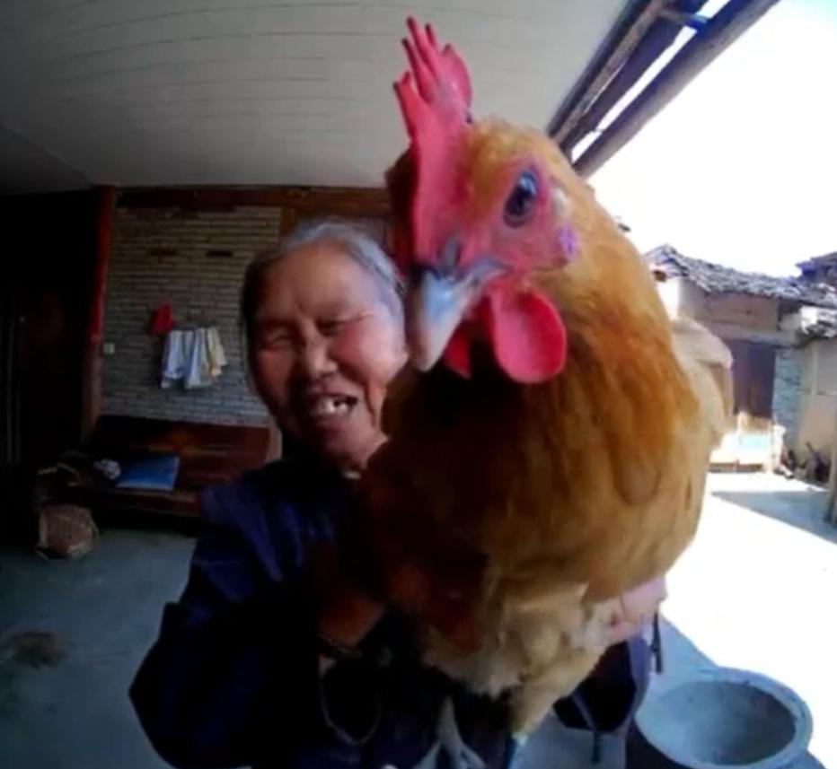 有一次还举着一只鸡