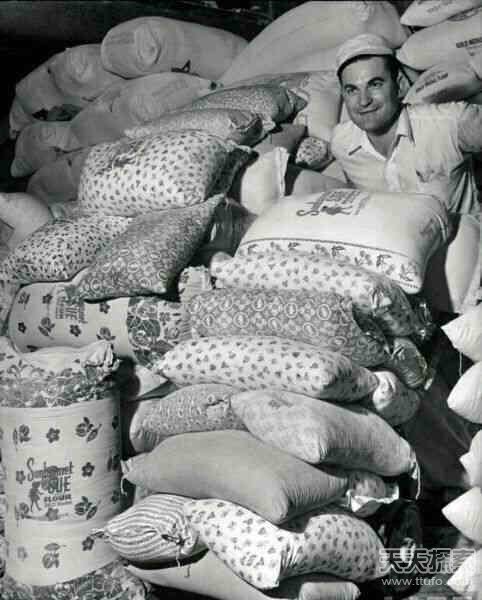 1939年,贴心的面粉厂用印有花纹图案的布袋装面粉,这样穷人家就可以直接用这些布袋做衣服啦。