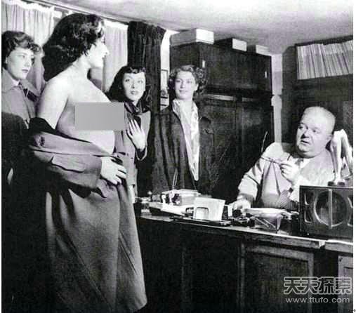 前面求职的姑娘正接受"面试".巨大的失业数字令歌舞厅老板有了挑三拣四的权利。1953年,著名的摄影家罗伯特。杜瓦斯诺受《摄影记者》杂志之托,拍摄了一组关于巴黎马约尔歌舞厅的专题报道。对于当时生活十分拮据的杜瓦斯诺来说,接受杂志社这个合约意味着经济困难的缓解。但一向以拍摄严肃题材著称的摄影家,却在心理上很难接受以风月场为主题的报道任务。然而,当他深入到马约尔歌舞厅的生活中后,却发现这里也是整个社会的缩影,生活在其中的人们也可能代表社会文化的一部分。当时的马约尔歌舞厅规模很小,只有仅能容纳400人的观众席,它还没有雄心去争取在歌舞演出界名播全球的地位。然而靠着为换一片面包的姑娘们的大胆的裸露表演,马约尔歌舞厅最终声名远扬了。
