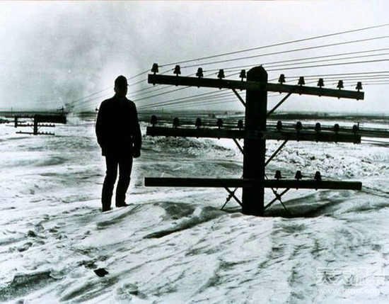 1966年3月美国中西部的北达科他州出现百年难得一见的大暴雪,积雪达3米左右,连电杆都几乎快被淹没了