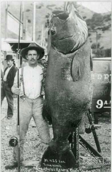 渔夫Edward Llewellen钓到了193公斤的黑鲈鱼……这世界纪录到现在也没破。