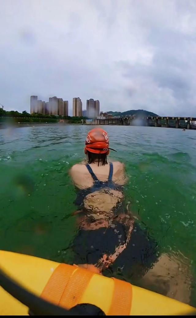 " 后来她很快就学会了游泳,而且比我厉害很多,她经常看视频,自己跟着网上学,游泳姿势也很标准。"