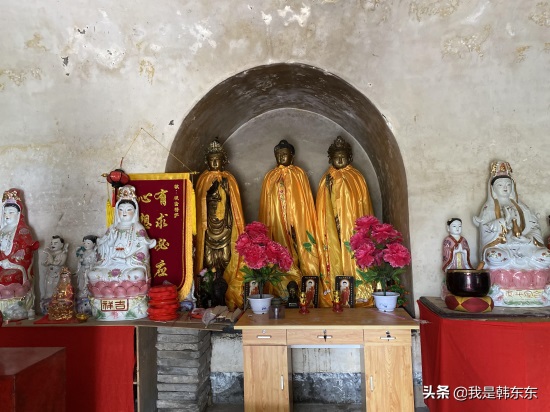 佛殿右面西耳殿三间窑洞为无梁殿,俗称枕头窑,殿内宽敞明亮,中间佛龛供奉着三尊菩萨。