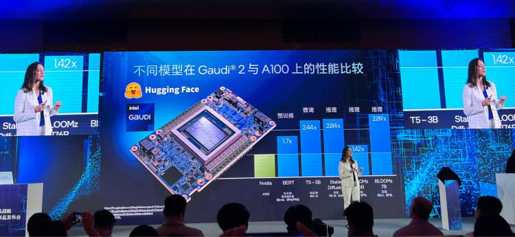 每一家芯片厂商都想要把 " 人工智能 = 英伟达芯片 " 这个公式推翻,英特尔尤其有必要这样做。7 月 11 日,英伟达在北京发布了名为 Gaudi 2 深度学习加速器芯片,这是英特尔专为大模型训练和推理打造的专供中国市场的芯片。