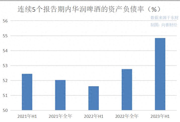最终,华润啤酒的整体资产负债率增长至 54.85%,远高于年初的 52.76% 和去年同期的 51.62%。