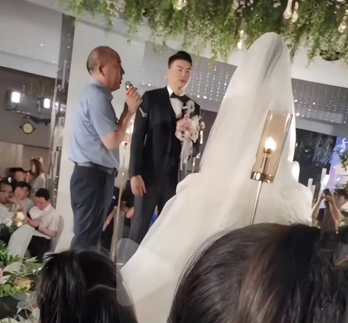 婚礼仪式盛大非凡,台下坐满了李根一众篮球界的名人和好兄弟,在亲朋好友的注视下,两人笑容满面携手走进婚姻殿堂。