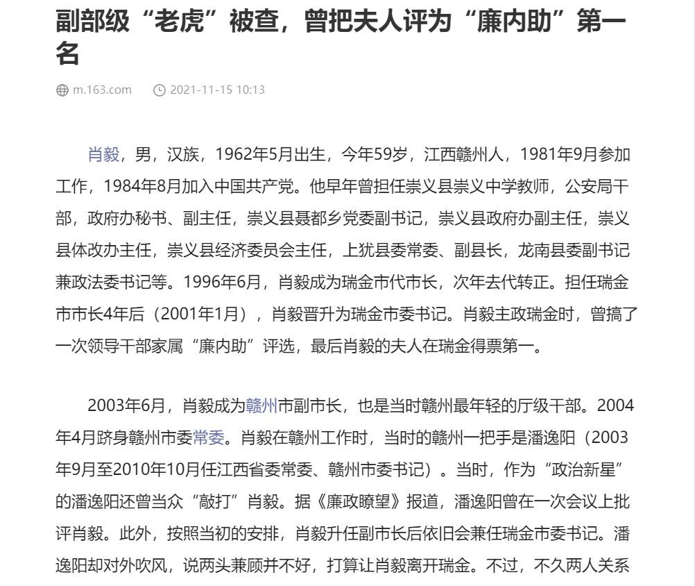 网易:副部级“老虎”被查,曾把夫人评为“廉内助”第一名