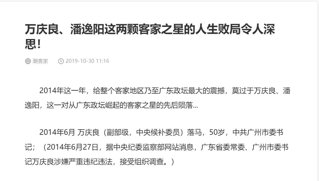 搜狐网:万庆良、潘逸阳这两颗客家之星的人生败局令人深思!