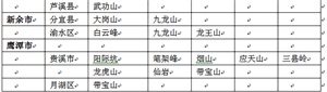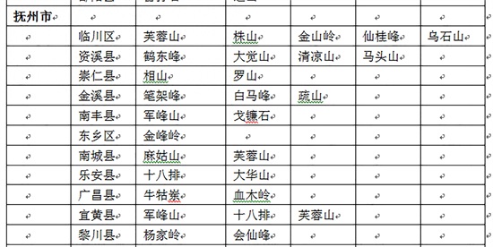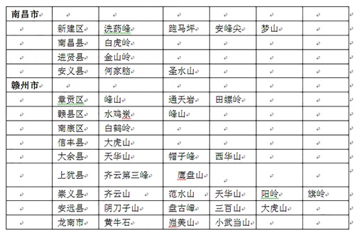 以上是笔者收集的江西各市、区、县山峰一览表,由于水平有限,有一些不妥和遗漏及错误的地方,敬请读者原谅指正,以使资料更为完善。