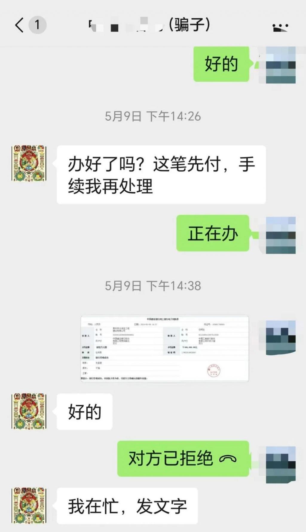 受害人 周女士(化名):我有个习惯,打完每一笔款我都要和当事人确认,我就跟领导发信息去确认,结果发信息确认,他没回我就打就想视频和他确认,结果他挂断我的视频了,说他正在忙。第一个电话也是给我挂断的,我还以为老板真忙,但是我想不行,这款太大,我又打电话确认,这次老板接了,这时候才发现我被骗了。