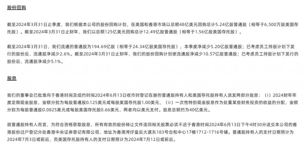 125 亿美元保底的分红 + 回购储备,回报股东阿里下重本