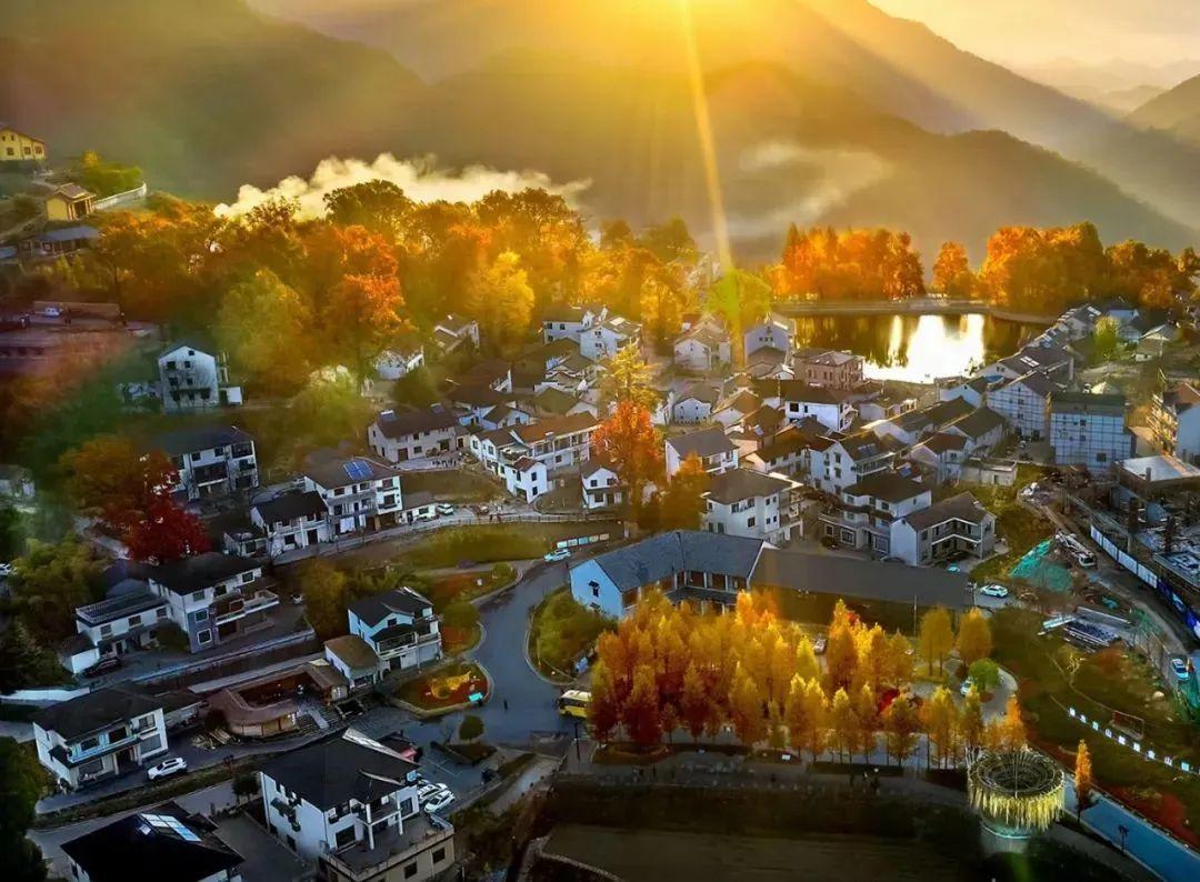秋天是太湖源镇指南村最美的季节,村子依山而建,白墙灰瓦的民居两侧,有百余亩梯田,院前屋后耸立的银杏红枫,如一幅艳丽的实景油画,动人心弦。