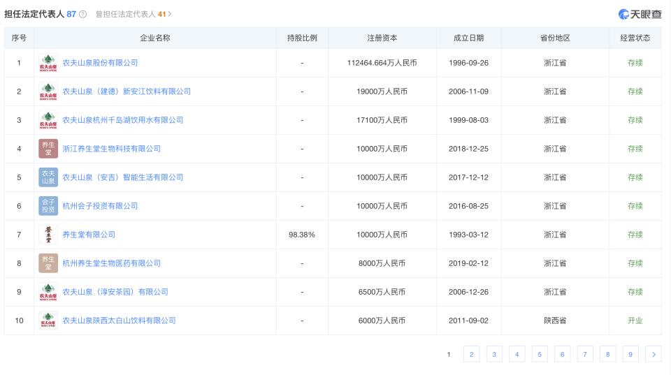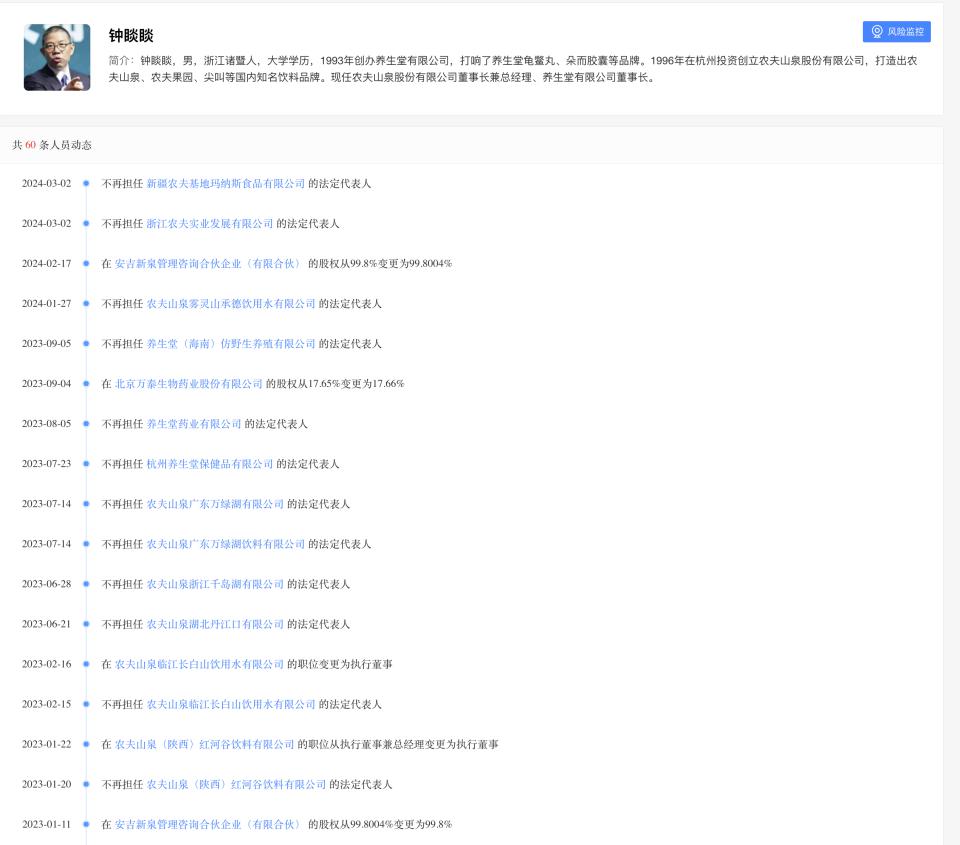 钟睒睒卸任浙江农夫实业法定代表人,去年以来已卸任12家
