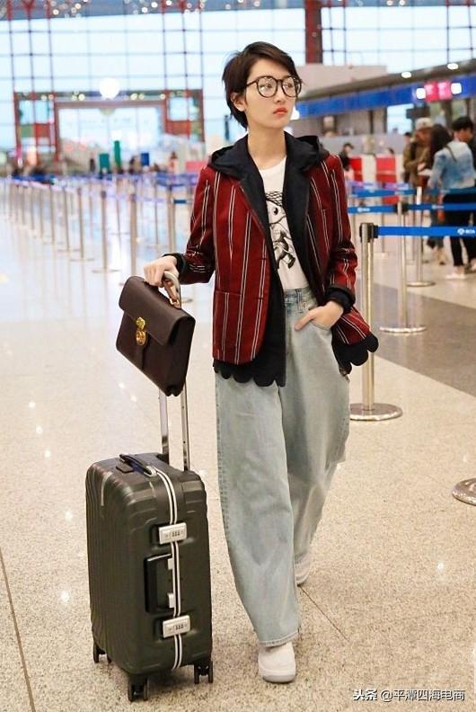 白条纹红底的外套,在沉闷的冬天里显得格外吸睛。pick简约的牛仔阔腿裤,这款牛仔阔腿的颜色较浅,用浅色来协调外套的红色,效果非常好,变身气质达人。外套里面内搭白色图案单品提亮又富有生趣。脚踩小白鞋,轻盈又活泼。