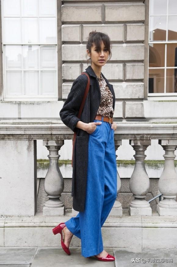 豹纹内搭单品,个性又霸气,选择深灰色长款外套来中和,这样搭配,可以显得更加沉稳一些。get牛仔阔腿裤,使整个look活泼了起来。把内搭单品束进裤子里更是打造2米长大美腿的既视感。脚上穿的是红色高跟鞋,张扬又点睛。
