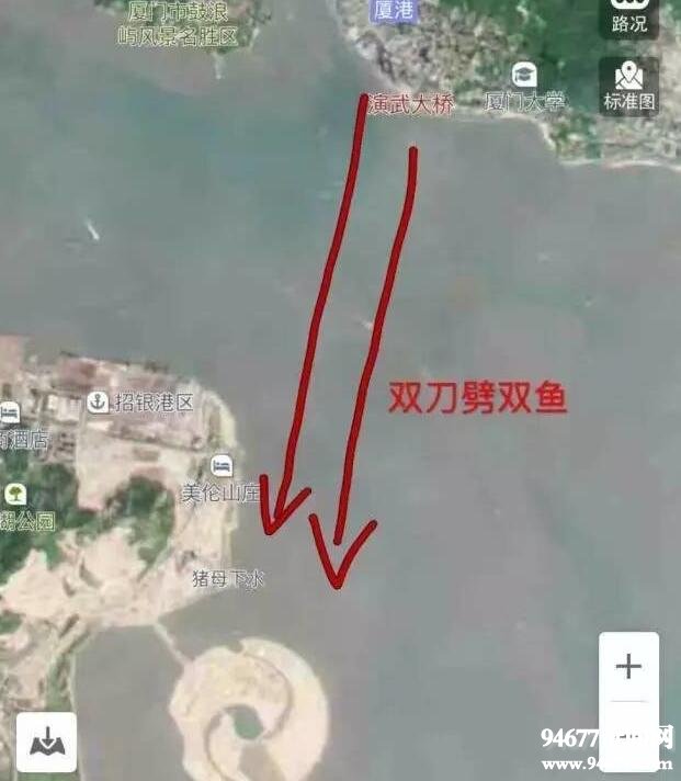 由于厦门双子塔长得像两把刀,所以就有网友认为,刀刃面对的地方肯定有问题,在卫星地图放大一看,没想到刀刃所对是漳州!。在地图上看,漳州又似双鱼的形状,这就形成了 " 双刀劈双鱼 " 的可怕局势。