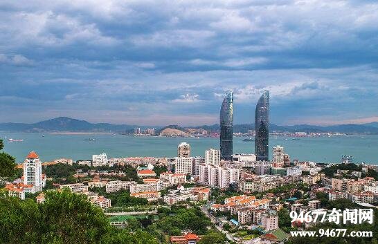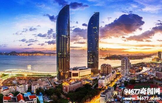 一个城市的高楼,可以代表它的发展水平,厦门海边有一对厦门双子塔高耸入云,成为厦门最标志性的建筑,远远地看上去非常像两把刀,也有人说像是风帆。厦门双子塔是厦门最高楼,高度达到300米,是中国第一双子塔,斥资50亿元,是厦门崛起的标志。