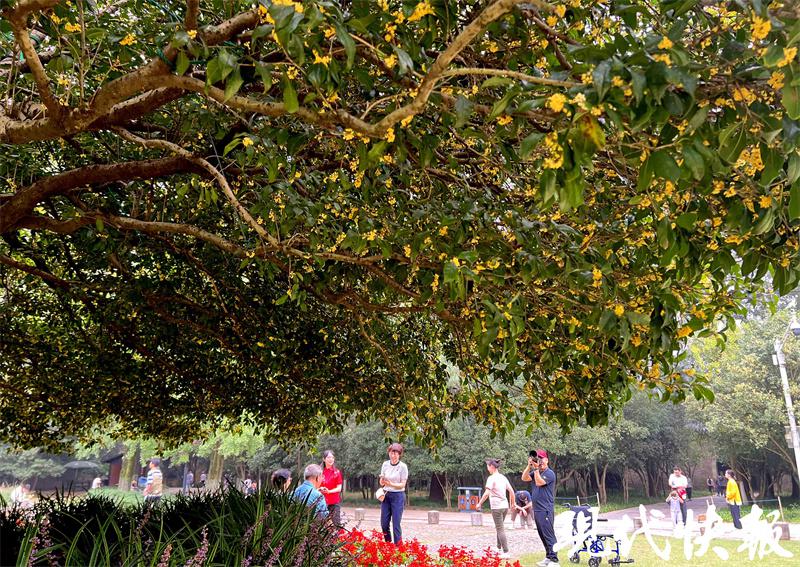 现代快报讯(记者 卢河燕 / 文 赵杰 / 摄)中秋国庆 8 天假期,南京进入了桂花盛开、满城飘香的时节。走在街头,时不时地就有香味萦绕在鼻尖,不少小伙伴在南京来了一场赏桂 City Walk。