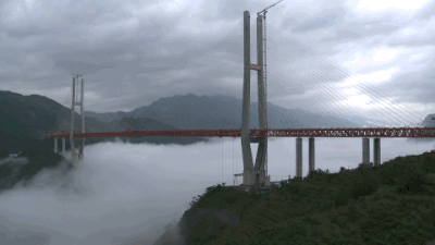 虽然北盘江大桥看起来和空中玻璃走廊一样惊现,但是在通车后,云南宣威城区至贵州六盘水的车程将从此前的5个小时左右,缩短为1个多小时,极大程度上节省了行车的时间,是中国强盛的有力证明。