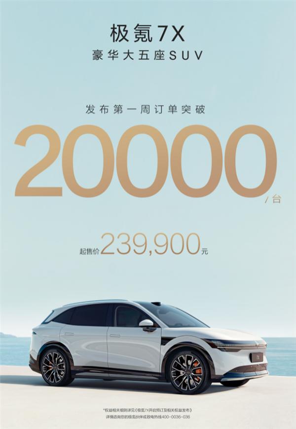 此前,极氪 7X 已启动预售,官方公布的起售价为 23.99 万元,预计在 9 月 20 日全面上市并开始批量交付。