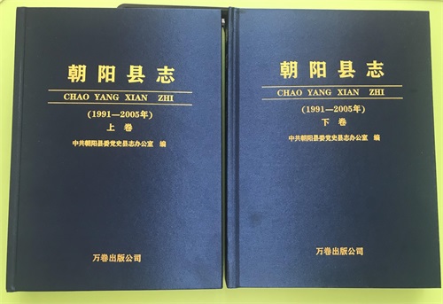日前,记者获悉,《朝阳县志(1991—2005》正式出版发行。该志编纂委员会主任由朝阳市政协副主席、朝阳县委书记李贵平,县人大常委会主任王凤山,县委副书记、县长刘力东,县政协主席张国金担任;该志由县委党史县志办公室主编,由万卷出版公司出版发行,全国新华书店有售。