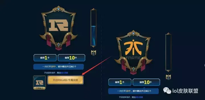 假设你能经过这个BUG取得200钻石的话,那么今日你去抽这个传奇之路相同来得及,直接去买RNG或许SSG的冠军奖杯,一个就行,敞开冠军奖杯会得一款皮肤,敞开专属礼包还会得一款皮肤,等于是两款。