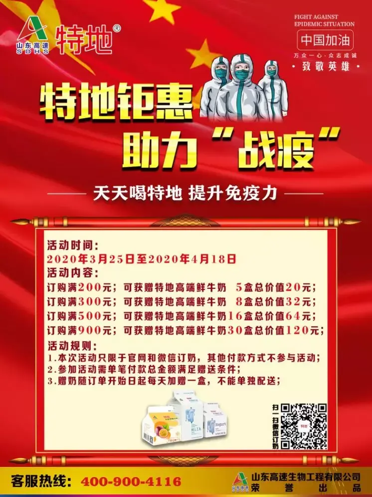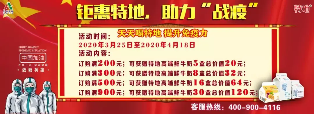 订购满900元;可获赠特地高端鲜牛奶30盒总价值120元;
